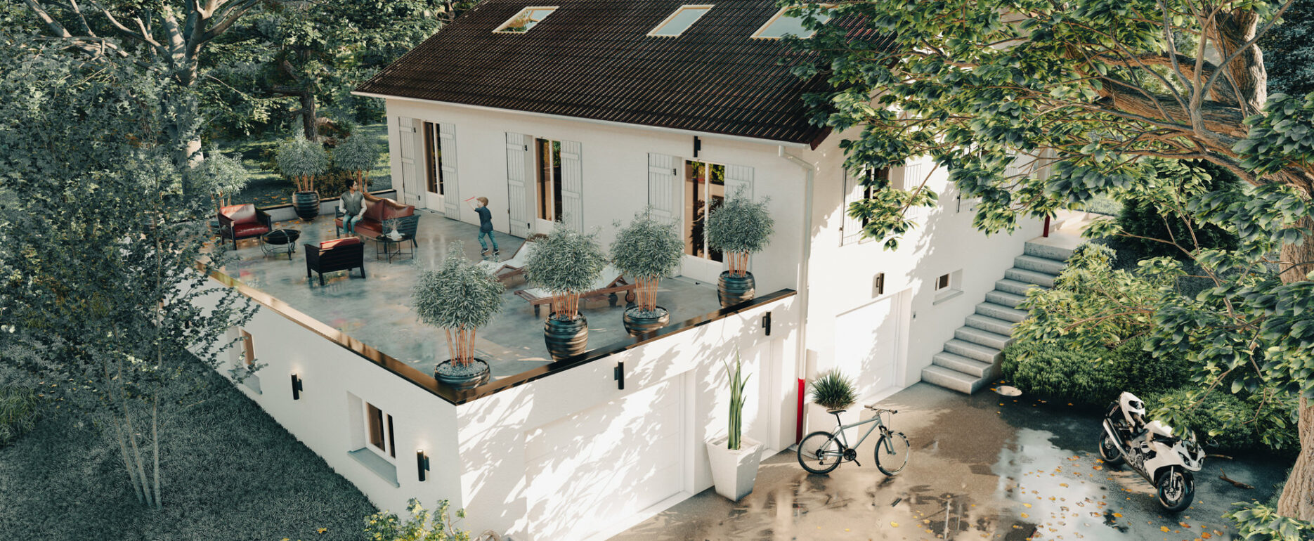 Afin de présenter au mieux votre projet immobilier et soutenir vos ventes, la perspective 3D extérieure présente dans son architecture et son environnement votre bâtiment, votre lotissement votre maison.